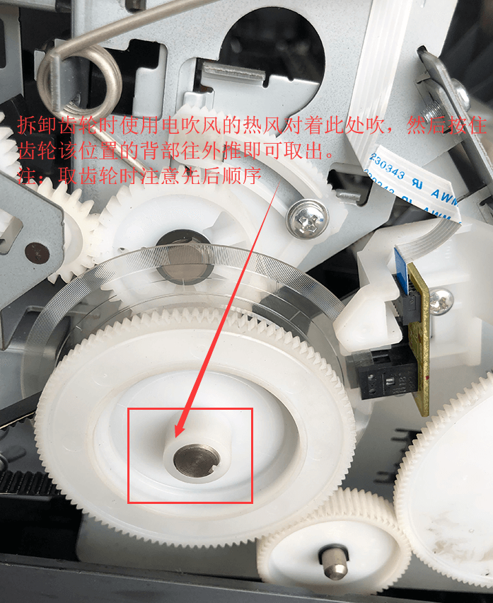 该类型打印机的齿轮拆卸方法,如图: