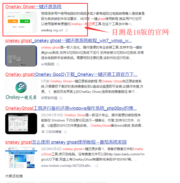 OneKeyGhost_V18.0.18百度搜索下载地和用户评论: