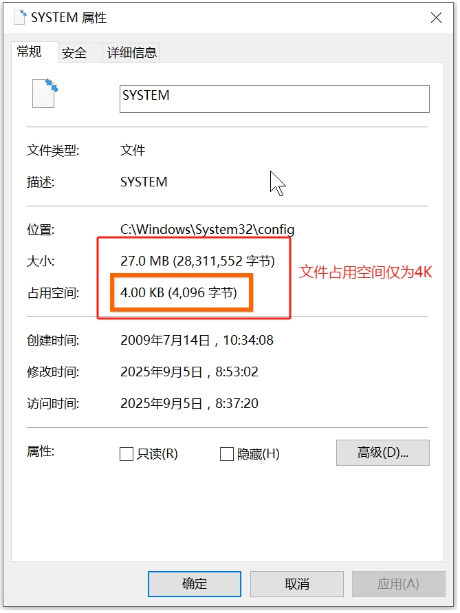 3. 文件安全权限中所有者为“Administrator”默认应该是“SYSTEM”,是不是有哪个软件对文件进行过权限修改操作,导致文件头部有些数据不规范?