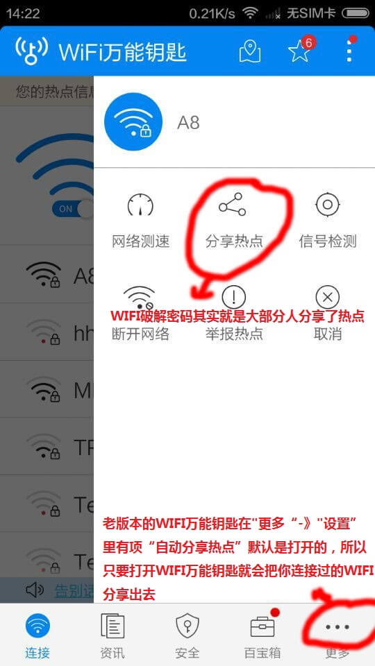 WIFI万能钥匙破解密码其实是破解一些简单的密码(如:123456578)和部分人密码分享
