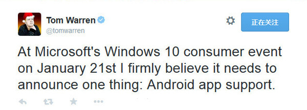 Windows 10到底会不会兼容Android应用?我们一起耐心等待微软方面的回应吧。