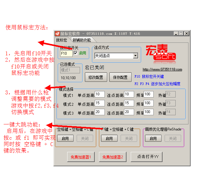 2,按“F1”相当于 按“空格 + C 组合键”大跳