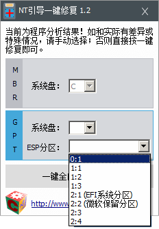 本程序的GPT引导修复功能需要程序运行在Win7 或者 更高版本 正常系统 及 PE系统。