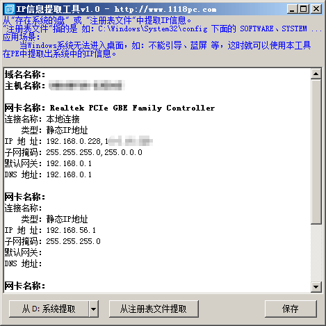 从"存在系统的盘" 或 "注册表文件"中提取IP信息。
