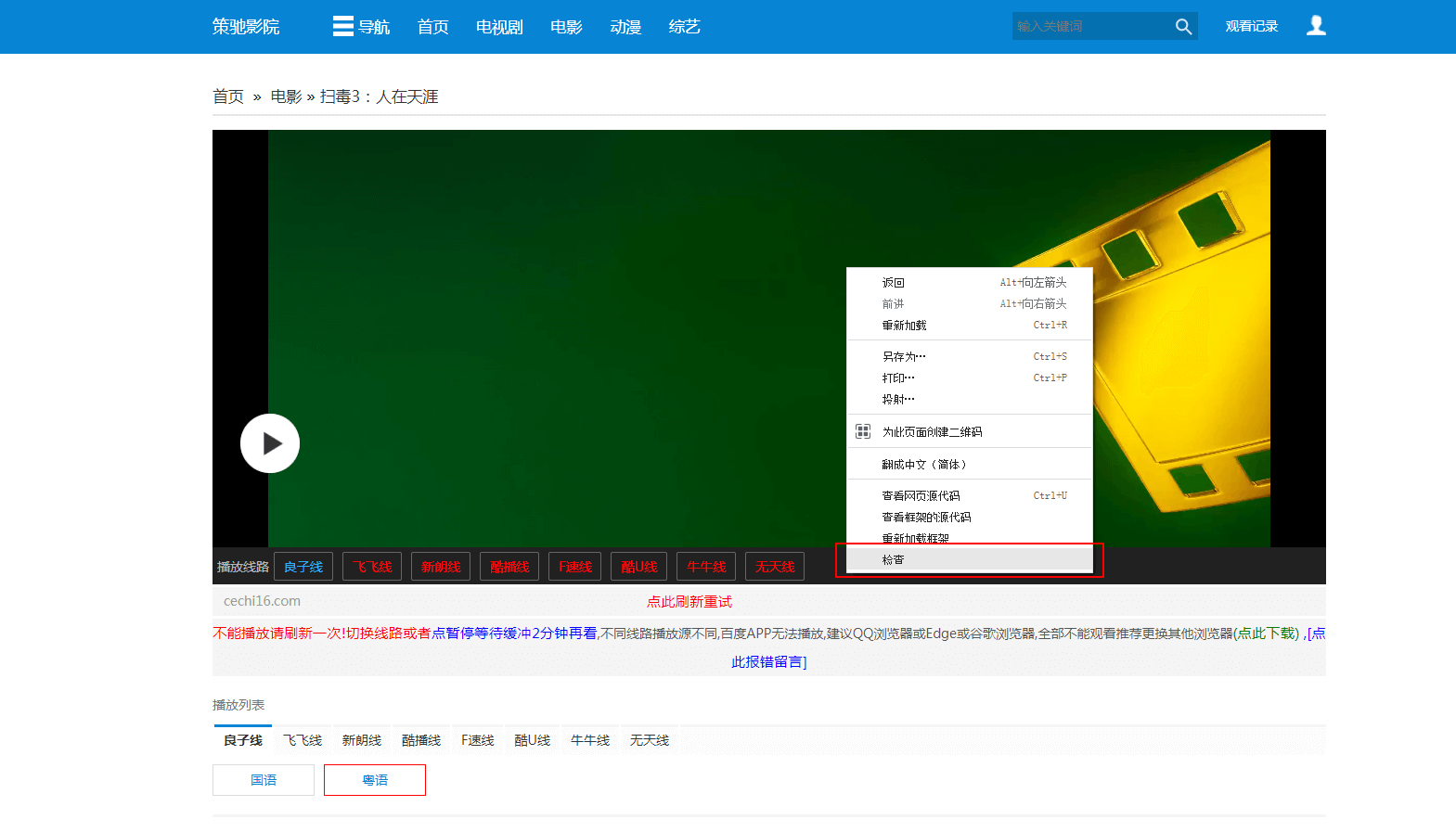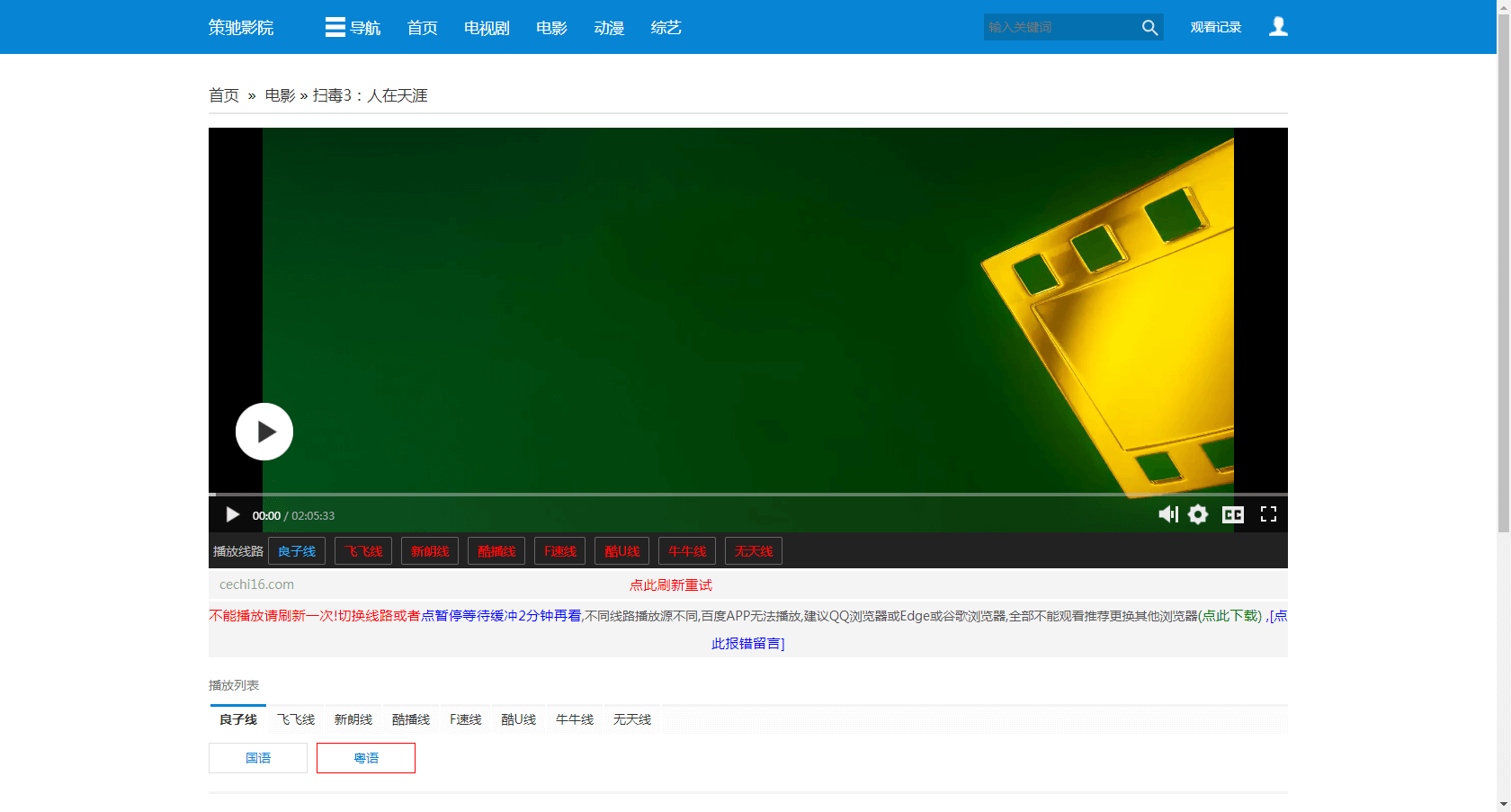在某站找到要下载的电影 如:“扫毒3:人在天涯”。