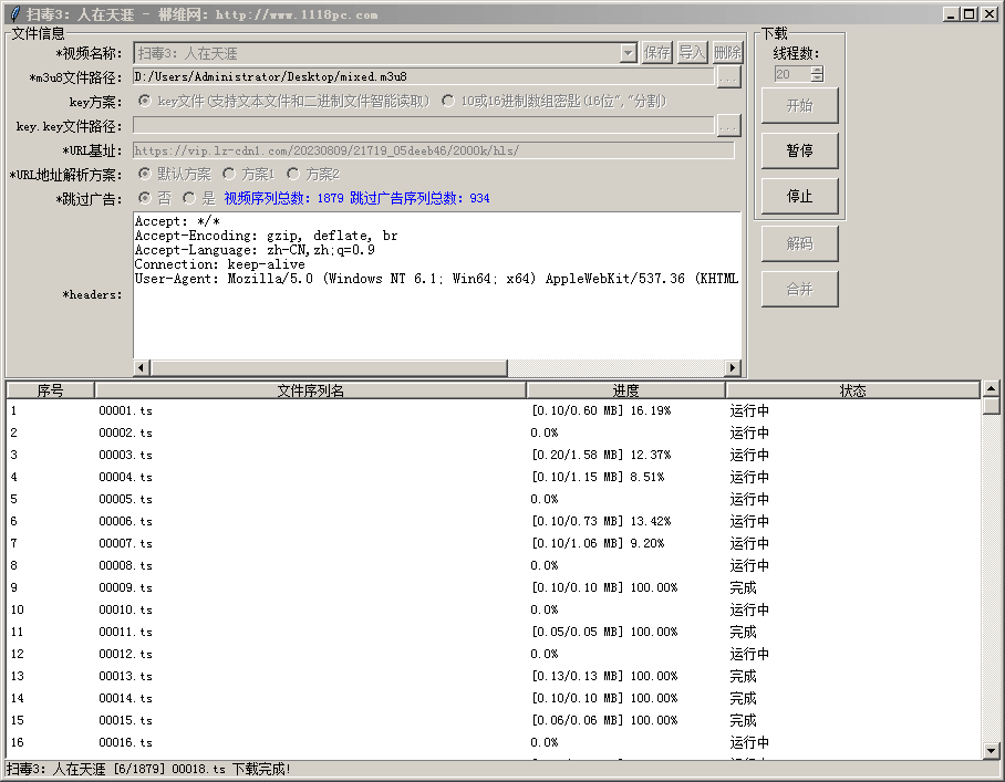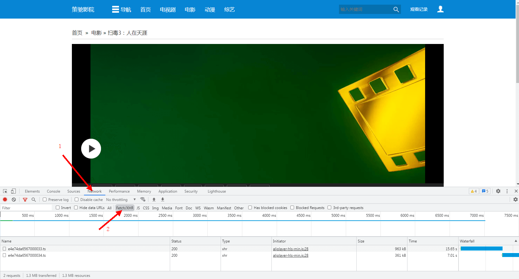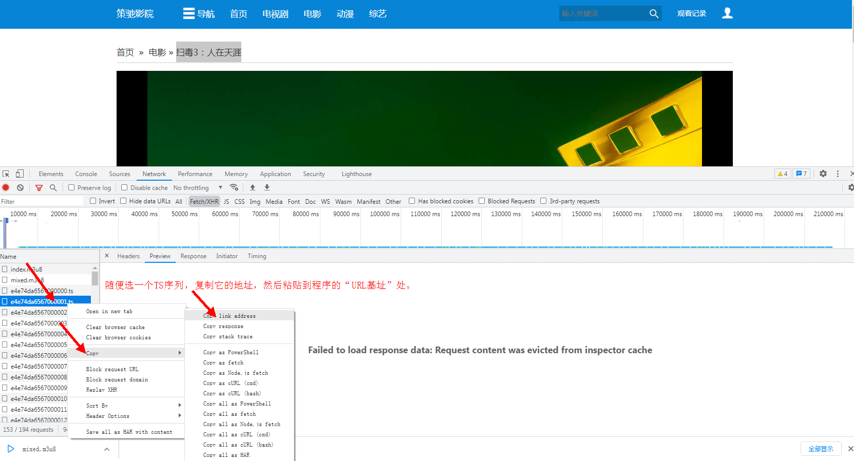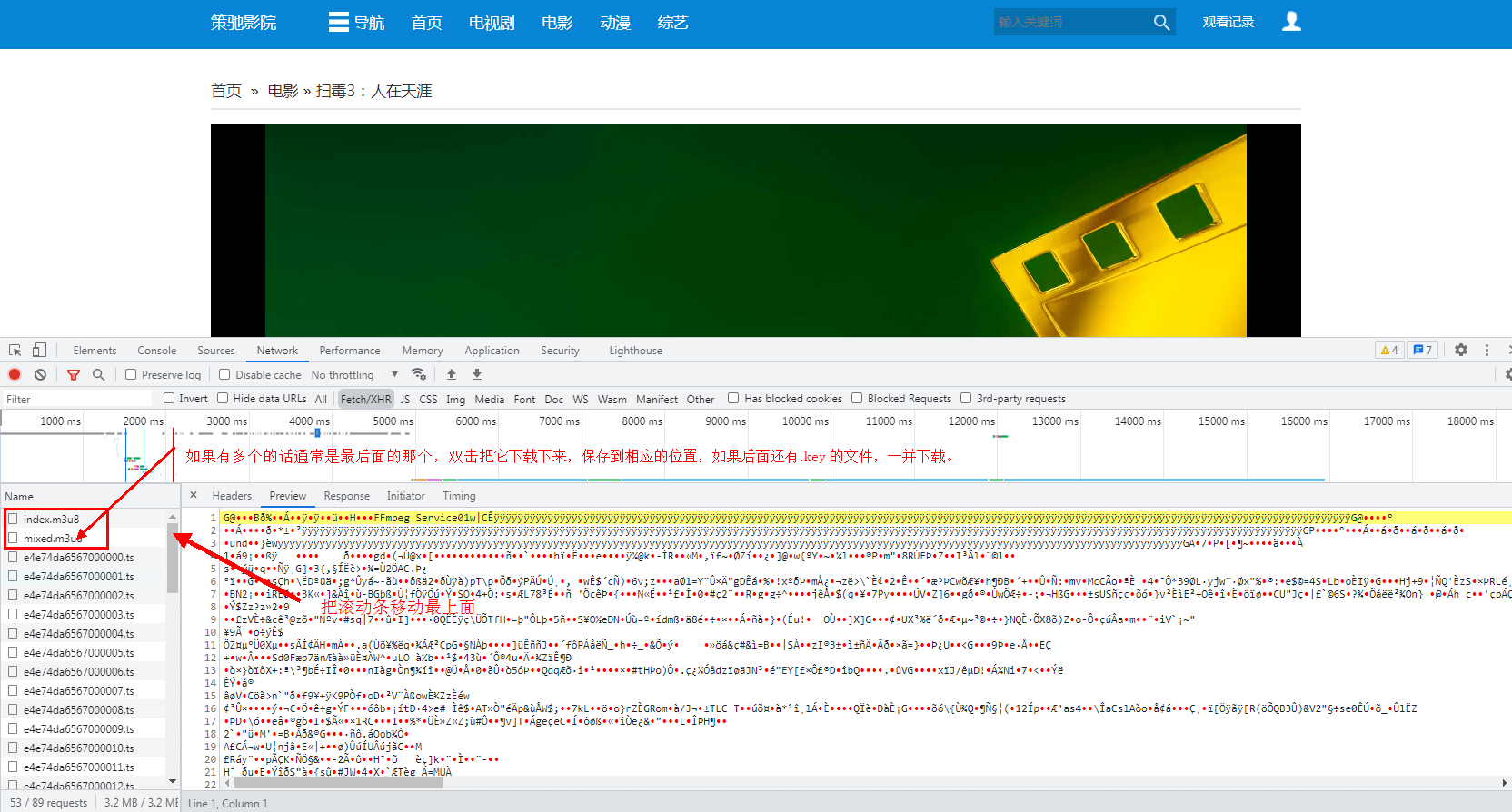4. 刷新页面(快捷键F5),找到要下载的ts序列文件,如果视频加密了,还会有.key的加密文件。