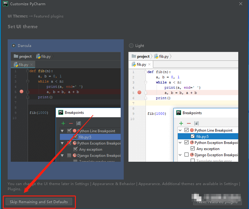 11.点击左下角的“Skip Remaining and Set Defaults“
