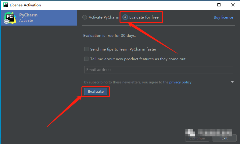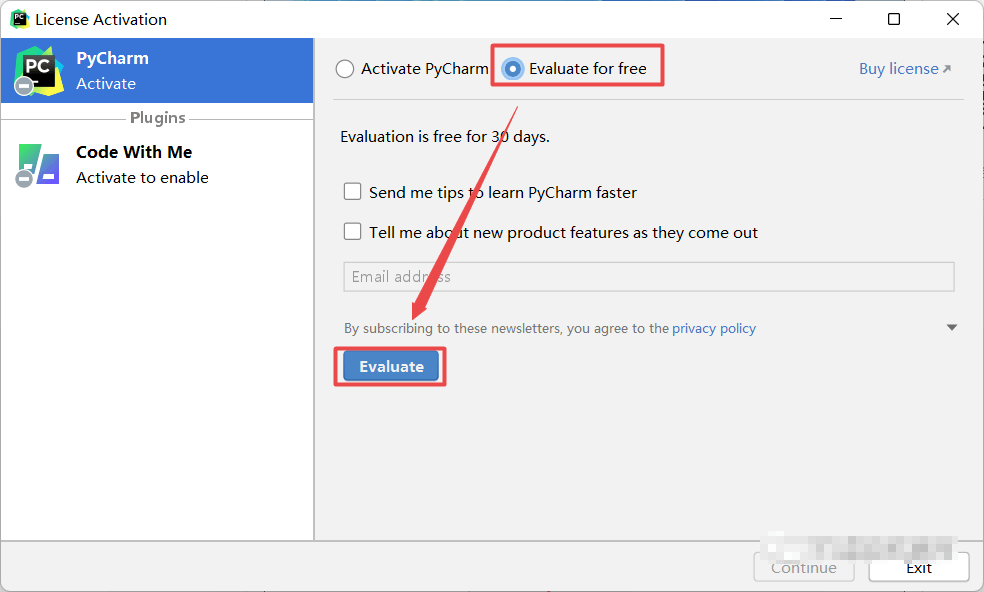12.点选“Evaluate for free”,点击“Evaluate”