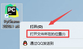 19.在桌面上找到”PyCharm 2020.1“软件图标,鼠标右键点击“打开文件所在位置”