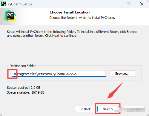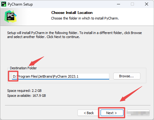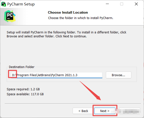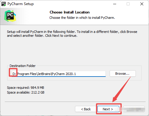 4.选择软件安装路径,建议和教程中的保持一致,本例安装到D盘(将路径地址中的首字符C改为D表示安装到D盘,安装路径不要出现中文),点击“Next”