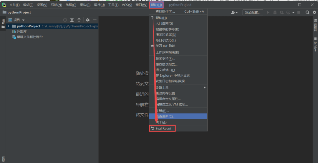 21.点击菜单栏中的“帮助“选择“Eval Reset“