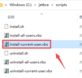 11.双击打开复制过来的“jetbra”文件夹,再打开“scripts”文件夹,双击运行“install-current-user.vbs”文件