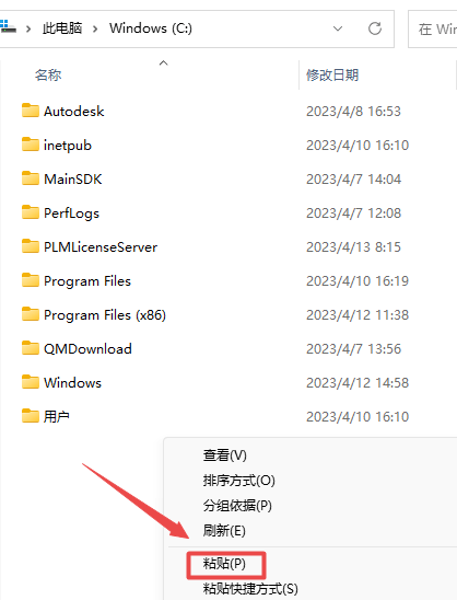 10.打开桌面“此电脑”(Win7的计算机),打开C盘根目录,粘贴刚刚复制的“jetbra”文件夹