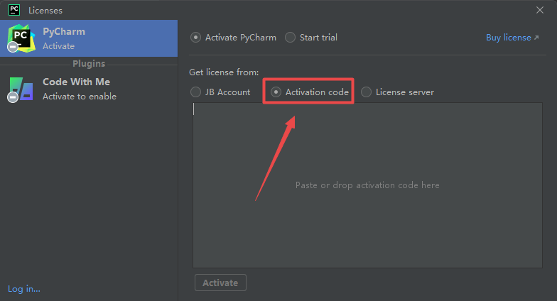 15.点击“Activation code“