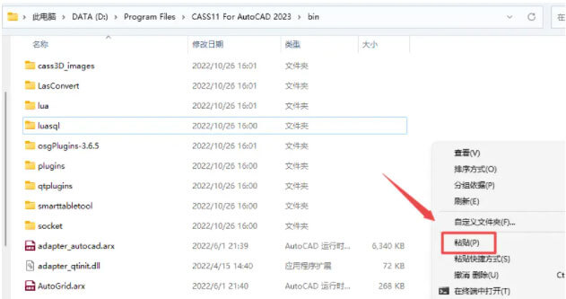 2、复制BIN文件夹覆盖cass安装文件夹下的bin