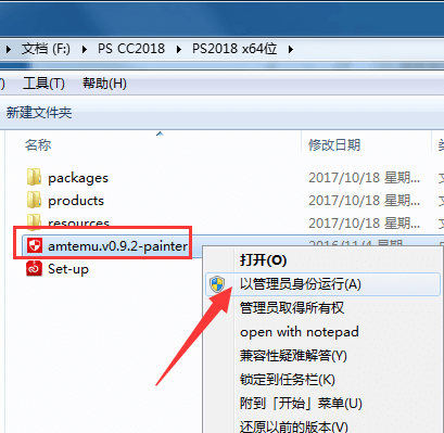 1. 第一次使用,安装的时候我们需要注册一个账号,点击“获取Adobe ID“已经有账号的用户可以直接登陆。2. 加载完成后会自动打开软件, 如果不自动打开可以从菜单栏里面找到Ps cc2018图标打开,接着我们点击右上方关闭按钮退出软件。3. 接着找到注册机 鼠标右击amtemu.v0.9.2-painter,选择以管理员的身份运行
